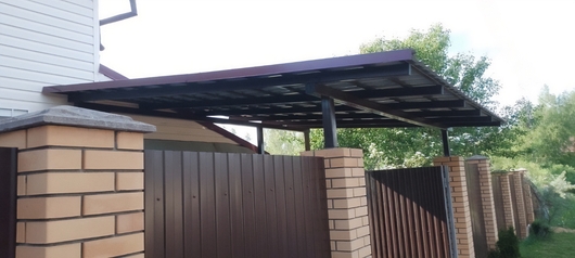 Односкатный навес-пристрой к дому из профлиста Арт-726